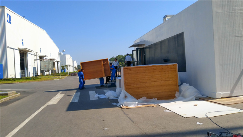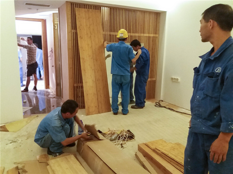 遠(yuǎn)大可建是遠(yuǎn)大科技集團(tuán)全資子公司,是全球持續(xù)建筑的先驅(qū),創(chuàng)造360小時建成30層精裝酒店的奇跡,目前在可持續(xù)酒店產(chǎn)品進(jìn)行深度研發(fā)?;趯?a href='http://m.gsjrylbmrbn.com/zhubancai/zhubancaizhishi/' target='_blank'>竹材的喜愛和對竹材環(huán)保的高度認(rèn)可,遠(yuǎn)大總裁張躍親自參與此次與桃花江竹材科技在其塔式酒店產(chǎn)品竹整裝項(xiàng)目的洽談。在遠(yuǎn)大可建汨羅工廠,酒店竹整裝三套樣板間安裝施工已基本完成,內(nèi)部裝飾全部在桃花江竹材科技工廠加工后運(yùn)至在現(xiàn)場組裝,地面鋪設(shè)竹地板,整體效果簡潔、自然、溫馨。遠(yuǎn)大總裁張躍視察樣板間后對竹材裝飾效果十分滿意,表示將加大對可建酒店竹整裝項(xiàng)目的研發(fā)與推廣,加強(qiáng)與桃花江竹材科技的深度合作,期望未來全世界每三幢新建建筑就有一幢是可建。