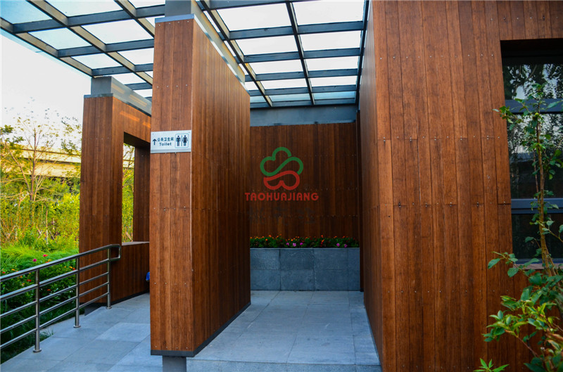 該公園東側(cè)為海濱高速公路,西側(cè)為濱海旅游區(qū)辦公區(qū)域,北臨海博路,南至規(guī)劃海旭道,是從城市空間到海邊的過渡型景觀。項目的建設(shè)是在尊重歷史和現(xiàn)實條件基礎(chǔ)上,結(jié)合先進的生態(tài)建設(shè)理念,大面積運用了桃花江竹材科技的環(huán)保竹材作為主體裝飾材料,公園內(nèi)的主體建筑,采用桃花江竹材科技的全竹裝飾來裝潢,高炭防腐竹材做外墻和吊頂裝飾,色澤明亮,渾然一體,既現(xiàn)代又傳統(tǒng)的竹材裝飾風(fēng)格為公園營造自然、郊野景觀氛圍,為市民提供一個全新的休閑娛樂場所。