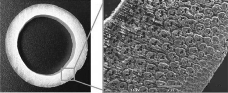 竹子是一種最典型天然的功能梯度材料。 從結(jié)構(gòu)上看,竹子是一種纖維增強復合材料,由兩種主要的組織組成: 作為增強作用的纖維(維管束) 和作為基體的薄壁細胞,這些纖維有很強的剛性,可以與鋼筋媲美。為了識別竹材莖稈中增強纖維的分布特性與竹稈抗彎剛度之間的關(guān)系,研究人員研究了竹材橫截面中的纖維分布。